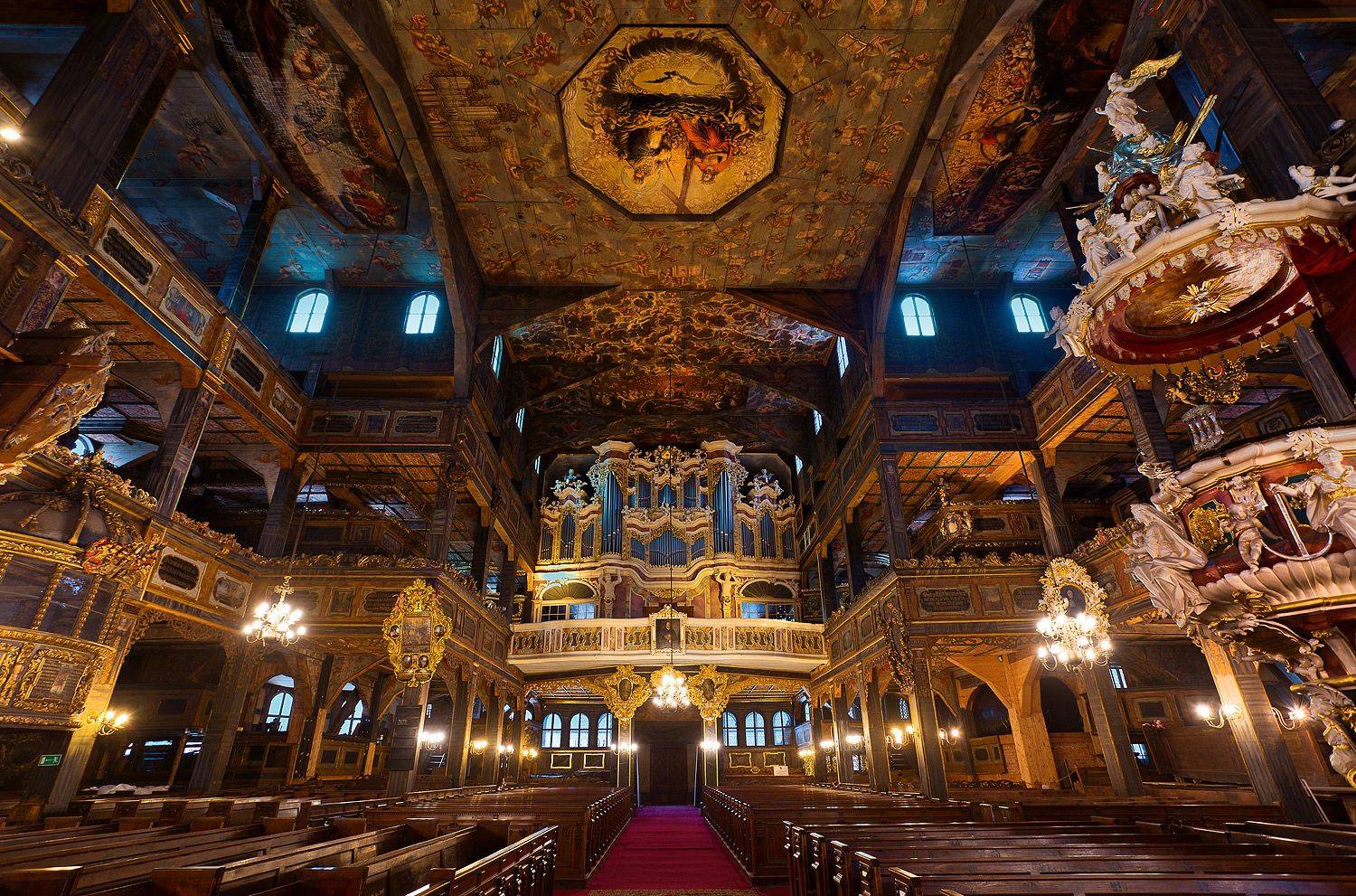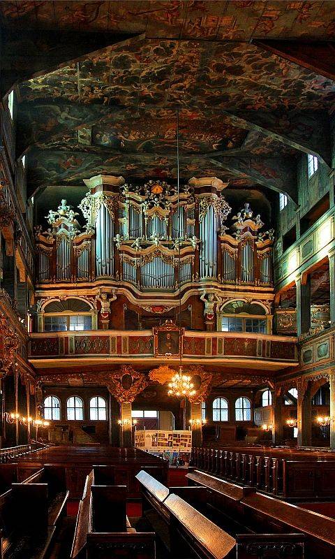 Protestant churches in Swidnica and Jawor are two out of three Churches of Peace built in the Lower Silesia in the 17th century. The third one in Glogow did not survive the fire of the town in 18th century. The two remaining churches are the biggest wooden religious objects in Europe. The richly decorated interiors are fine examples of baroque style. The Churches of Peace bear testimony to the quest of the Lutherans for religious freedom. Located outside the city walls, made of wood or clay and built in less than a year, they are now placed on the UNESCO World Heritage List.