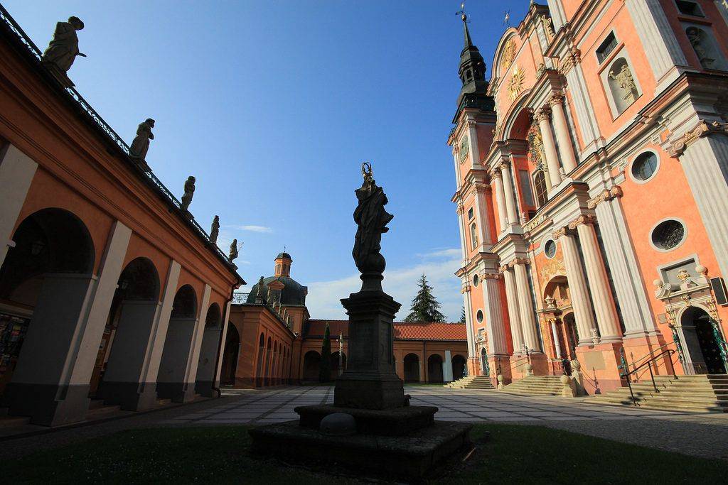 The legend says in 14th century Saint Mary releaved herself to a man condemned to death on the last night of his life. She told him she could save him from death on one condition – he had to make a scupture of her. She gave him a chisel and a piece of wood. The man sculpted all night. The next morning, a judge noticed the scupture held by the prisoner. He thought the scultpure was so beautiful it must have been made by God. He set the prisoner free. The salvaged man remembered he had promised Mother Mary to place the figure at the first lime tree he would encounter. He did as promised and built a house nearby. Ever since then miracles and cures are claimed to have happend in the towns nearby, which drew pilgrimages from all over the country. Soon a chapel was built next to the lime tree. Even Albrecht Hohenzollern – the Grad Master of the Teutonic Knights visited it once. In 18th century, the baroque sanctuary was built.